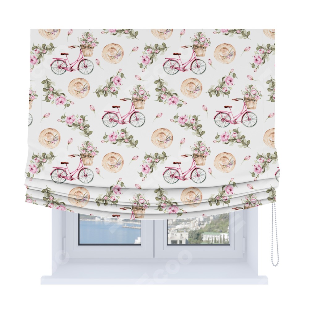 Римская штора Soft с мягкими складками, «Розовый велосипед»