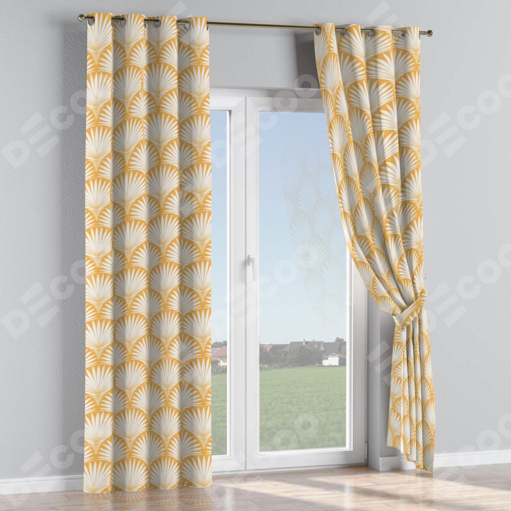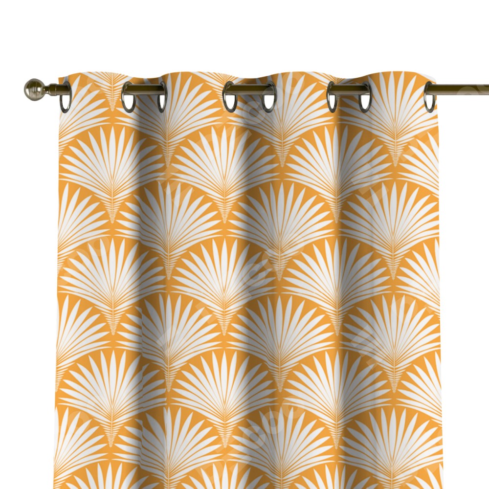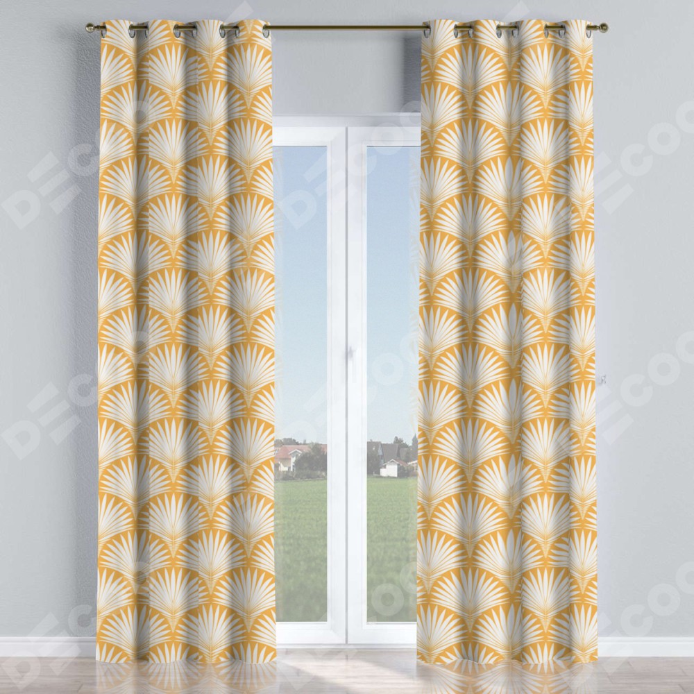 Комплект прямых штор, от производителя «Cortin», пошиты из ткани блэкаут с нанесением сублимационной печати «Арт-деко листья желтый». Данная модель пошита на люверсах, комплектуется на выбор круглым карнизом и подходит для монтажа на стену или потолок. Прямые шторы на люверсах шьются по стандарту с коэффициентом 1/2 (на 100 см. ширины проёма 200 см. ширины ткани), отличительным преимуществом данной модели является простой способ монтажа. Достаточно повесить ее на трубу и штора готова!