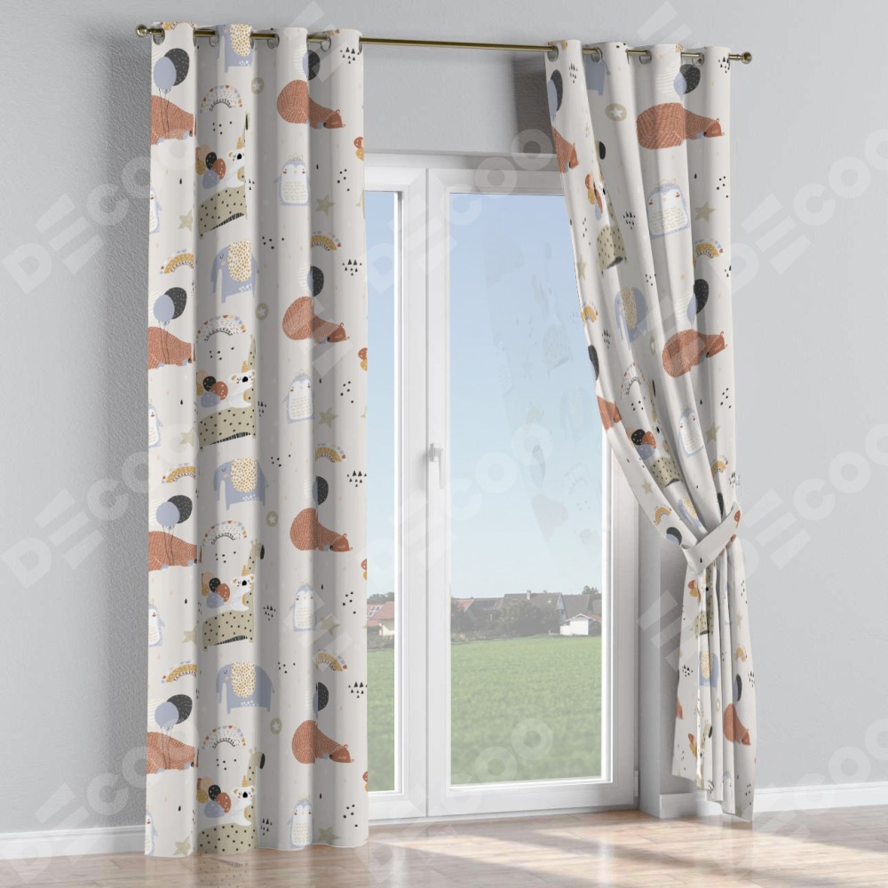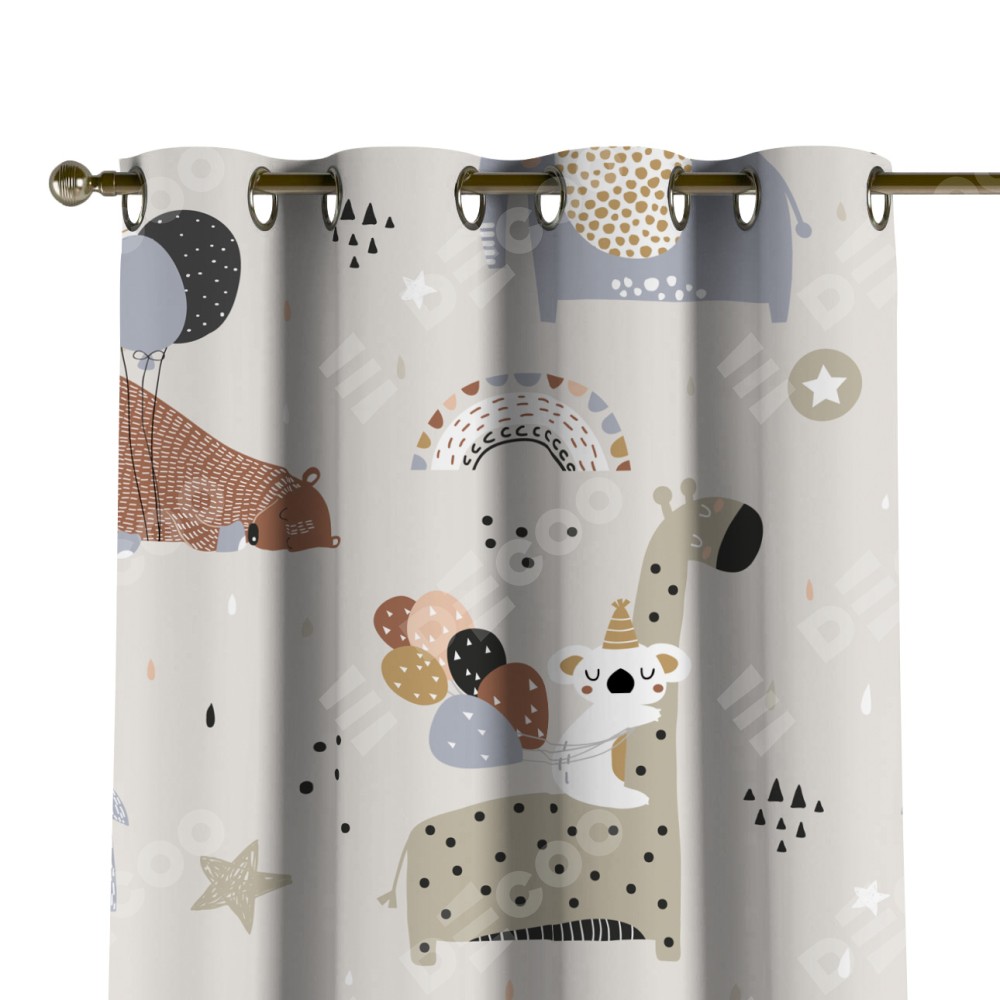 Комплект прямых штор, от производителя «Cortin», пошиты из ткани блэкаут с нанесением сублимационной печати «Вечеринка животных». Данная модель пошита на люверсах, комплектуется на выбор круглым карнизом и подходит для монтажа на стену или потолок. Прямые шторы на люверсах шьются по стандарту с коэффициентом 1/2 (на 100 см. ширины проёма 200 см. ширины ткани), отличительным преимуществом данной модели является простой способ монтажа. Достаточно повесить ее на трубу и штора готова!