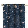 Комплект прямых штор, от производителя «Cortin», пошиты из ткани блэкаут с нанесением сублимационной печати «Звёзды и планеты». Данная модель пошита на люверсах, комплектуется на выбор круглым карнизом и подходит для монтажа на стену или потолок. Прямые шторы на люверсах шьются по стандарту с коэффициентом 1/2 (на 100 см. ширины проёма 200 см. ширины ткани), отличительным преимуществом данной модели является простой способ монтажа. Достаточно повесить ее на трубу и штора готова!