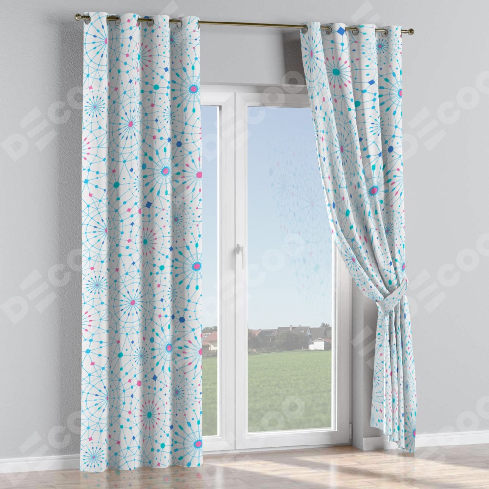 Комплект прямых штор, от производителя «Cortin», пошиты из ткани блэкаут с нанесением сублимационной печати «Круги и линии». Данная модель пошита на люверсах, комплектуется на выбор круглым карнизом и подходит для монтажа на стену или потолок. Прямые шторы на люверсах шьются по стандарту с коэффициентом 1/2 (на 100 см. ширины проёма 200 см. ширины ткани), отличительным преимуществом данной модели является простой способ монтажа. Достаточно повесить ее на трубу и штора готова!