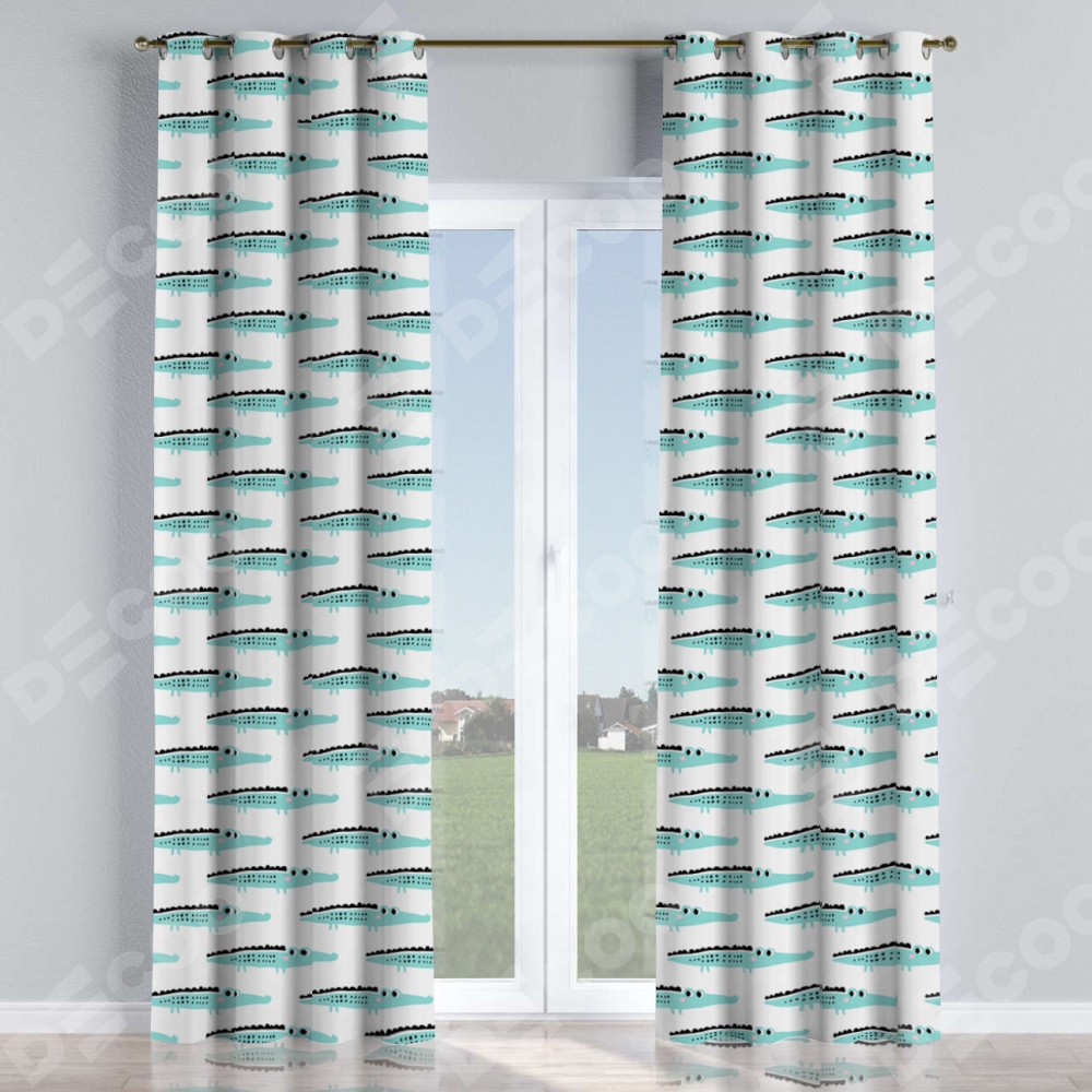 Комплект прямых штор, от производителя «Cortin», пошиты из ткани блэкаут с нанесением сублимационной печати «Мистер Крок». Данная модель пошита на люверсах, комплектуется на выбор круглым карнизом и подходит для монтажа на стену или потолок. Прямые шторы на люверсах шьются по стандарту с коэффициентом 1/2 (на 100 см. ширины проёма 200 см. ширины ткани), отличительным преимуществом данной модели является простой способ монтажа. Достаточно повесить ее на трубу и штора готова!