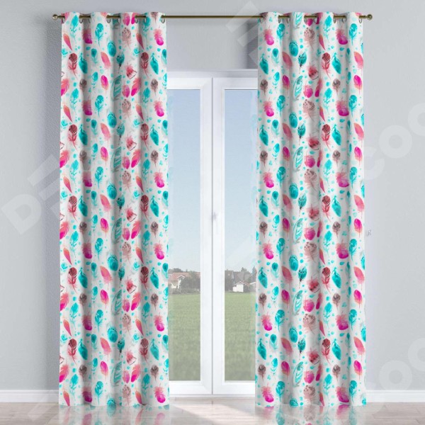 Комплект прямых штор, от производителя «Cortin», пошиты из ткани блэкаут с нанесением сублимационной печати «Перья». Данная модель пошита на люверсах, комплектуется на выбор круглым карнизом и подходит для монтажа на стену или потолок. Прямые шторы на люверсах шьются по стандарту с коэффициентом 1/2 (на 100 см. ширины проёма 200 см. ширины ткани), отличительным преимуществом данной модели является простой способ монтажа. Достаточно повесить ее на трубу и штора готова!