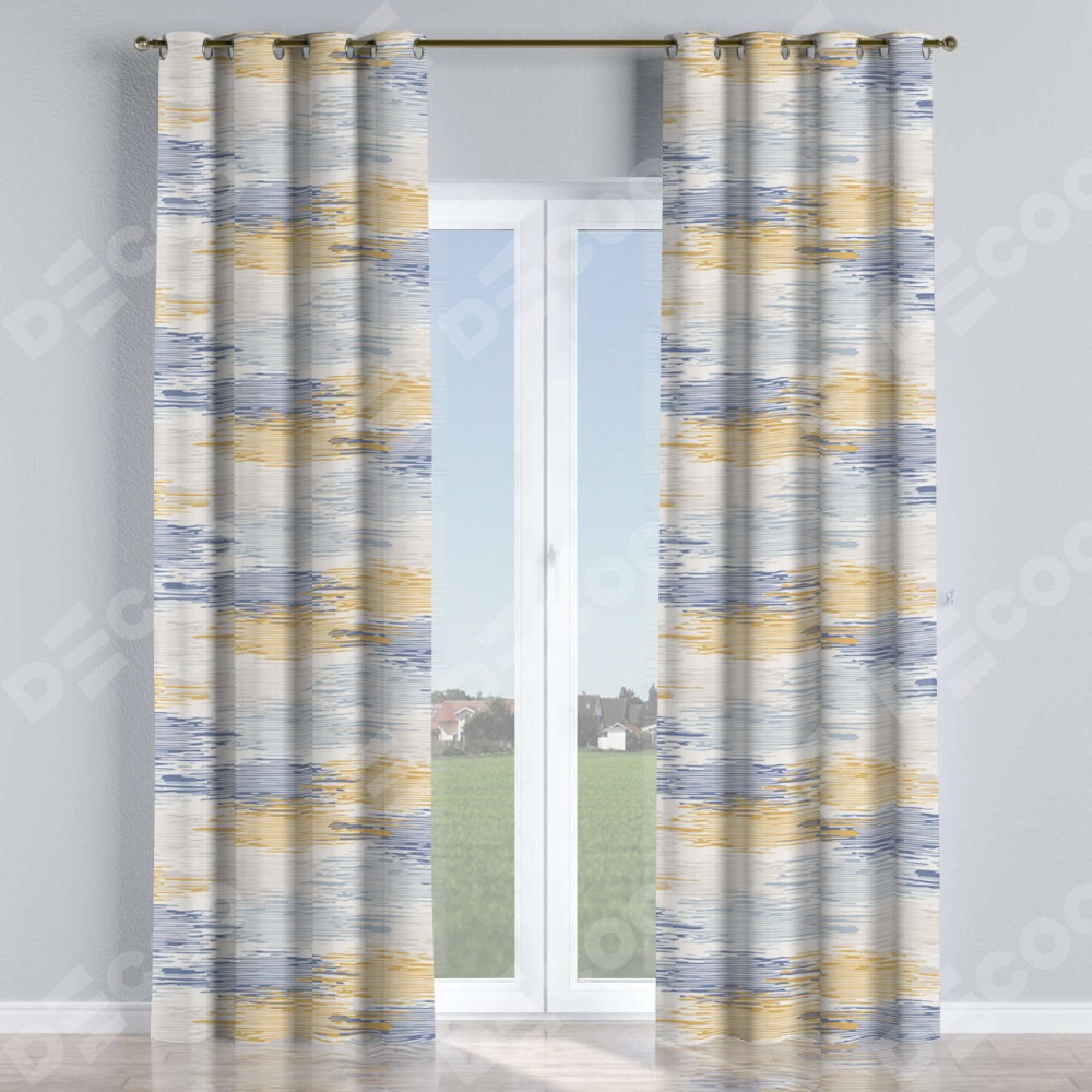 Комплект прямых штор, от производителя «Cortin», пошиты из ткани блэкаут с нанесением сублимационной печати «Полосатая волна». Данная модель пошита на люверсах, комплектуется на выбор круглым карнизом и подходит для монтажа на стену или потолок. Прямые шторы на люверсах шьются по стандарту с коэффициентом 1/2 (на 100 см. ширины проёма 200 см. ширины ткани), отличительным преимуществом данной модели является простой способ монтажа. Достаточно повесить ее на трубу и штора готова!