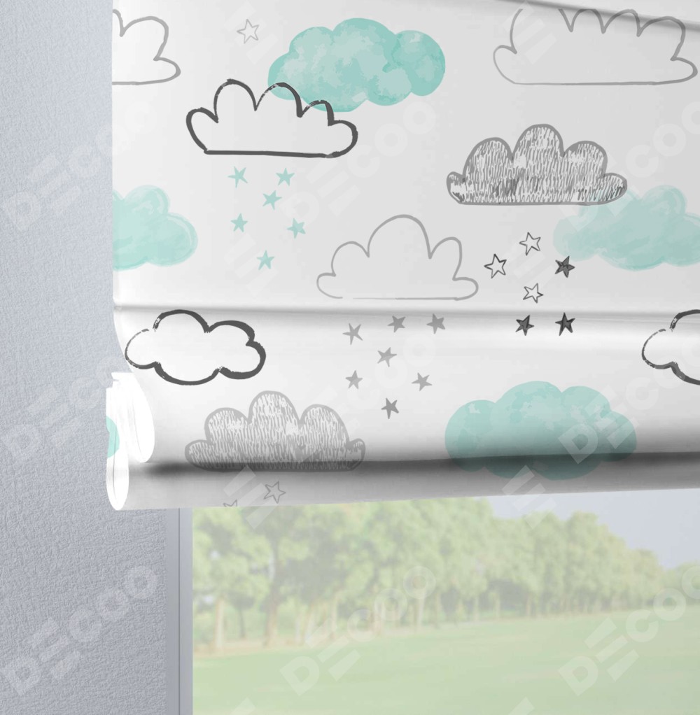Римская штора «Кортин» на петлях «Облака и звезды»