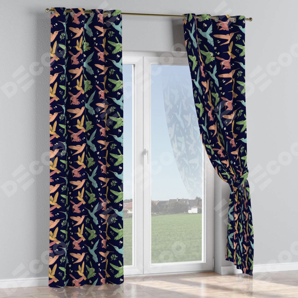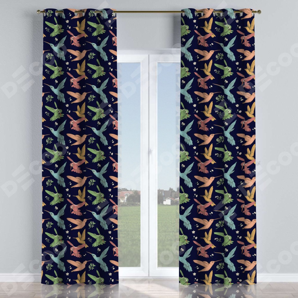 Комплект прямых штор, от производителя «Cortin», пошиты из ткани блэкаут с нанесением сублимационной печати «Птицы и цветы». Данная модель пошита на люверсах, комплектуется на выбор круглым карнизом и подходит для монтажа на стену или потолок. Прямые шторы на люверсах шьются по стандарту с коэффициентом 1/2 (на 100 см. ширины проёма 200 см. ширины ткани), отличительным преимуществом данной модели является простой способ монтажа. Достаточно повесить ее на трубу и штора готова!
