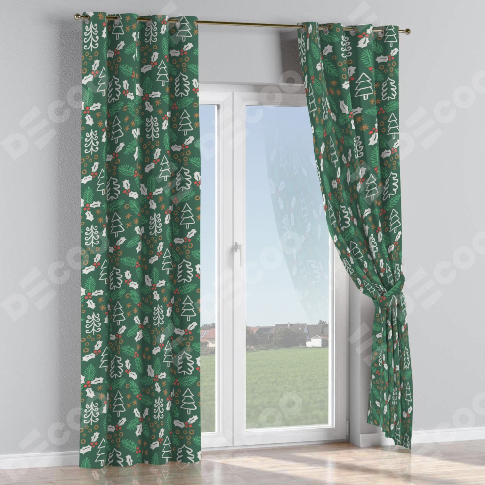 Комплект прямых штор, от производителя «Cortin», пошиты из ткани блэкаут с нанесением сублимационной печати «Рождественский узор». Данная модель пошита на люверсах, комплектуется на выбор круглым карнизом и подходит для монтажа на стену или потолок. Прямые шторы на люверсах шьются по стандарту с коэффициентом 1/2 (на 100 см. ширины проёма 200 см. ширины ткани), отличительным преимуществом данной модели является простой способ монтажа. Достаточно повесить ее на трубу и штора готова!