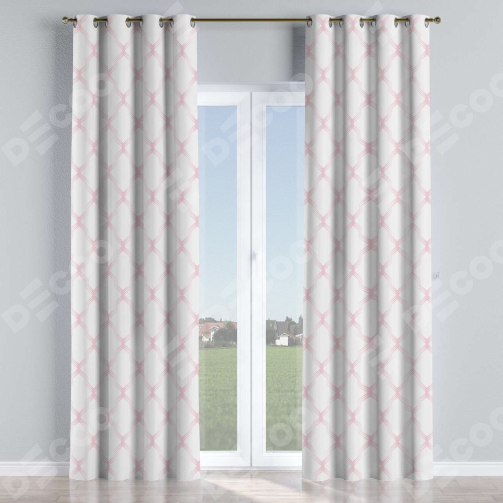 Комплект прямых штор, от производителя «Cortin», пошиты из ткани блэкаут с нанесением сублимационной печати «Розовые ромбы». Данная модель пошита на люверсах, комплектуется на выбор круглым карнизом и подходит для монтажа на стену или потолок. Прямые шторы на люверсах шьются по стандарту с коэффициентом 1/2 (на 100 см. ширины проёма 200 см. ширины ткани), отличительным преимуществом данной модели является простой способ монтажа. Достаточно повесить ее на трубу и штора готова!