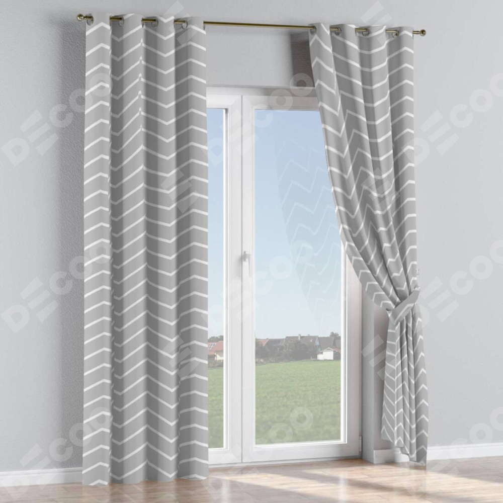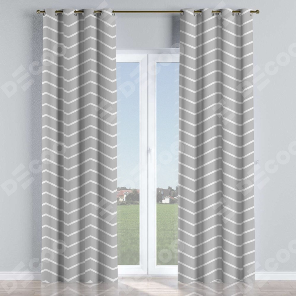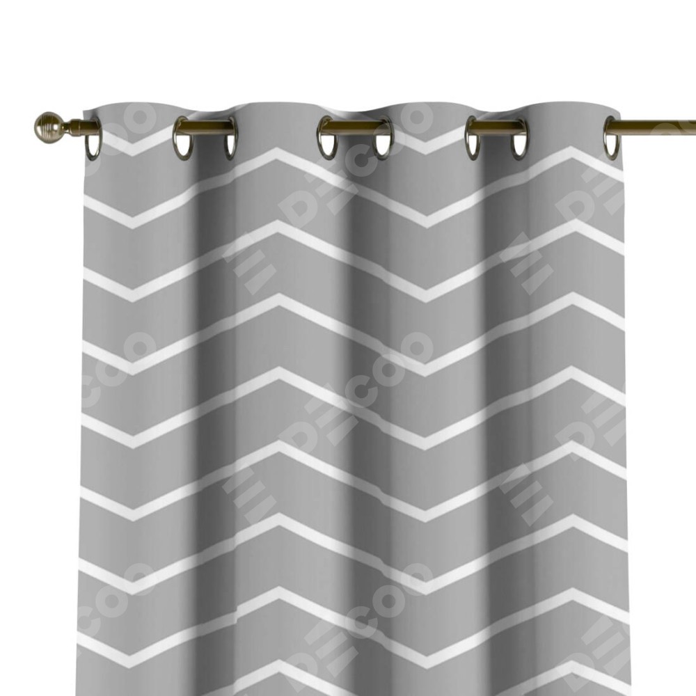 Комплект прямых штор, от производителя «Cortin», пошиты из ткани блэкаут с нанесением сублимационной печати «Серый зигзаг». Данная модель пошита на люверсах, комплектуется на выбор круглым карнизом и подходит для монтажа на стену или потолок. Прямые шторы на люверсах шьются по стандарту с коэффициентом 1/2 (на 100 см. ширины проёма 200 см. ширины ткани), отличительным преимуществом данной модели является простой способ монтажа. Достаточно повесить ее на трубу и штора готова!