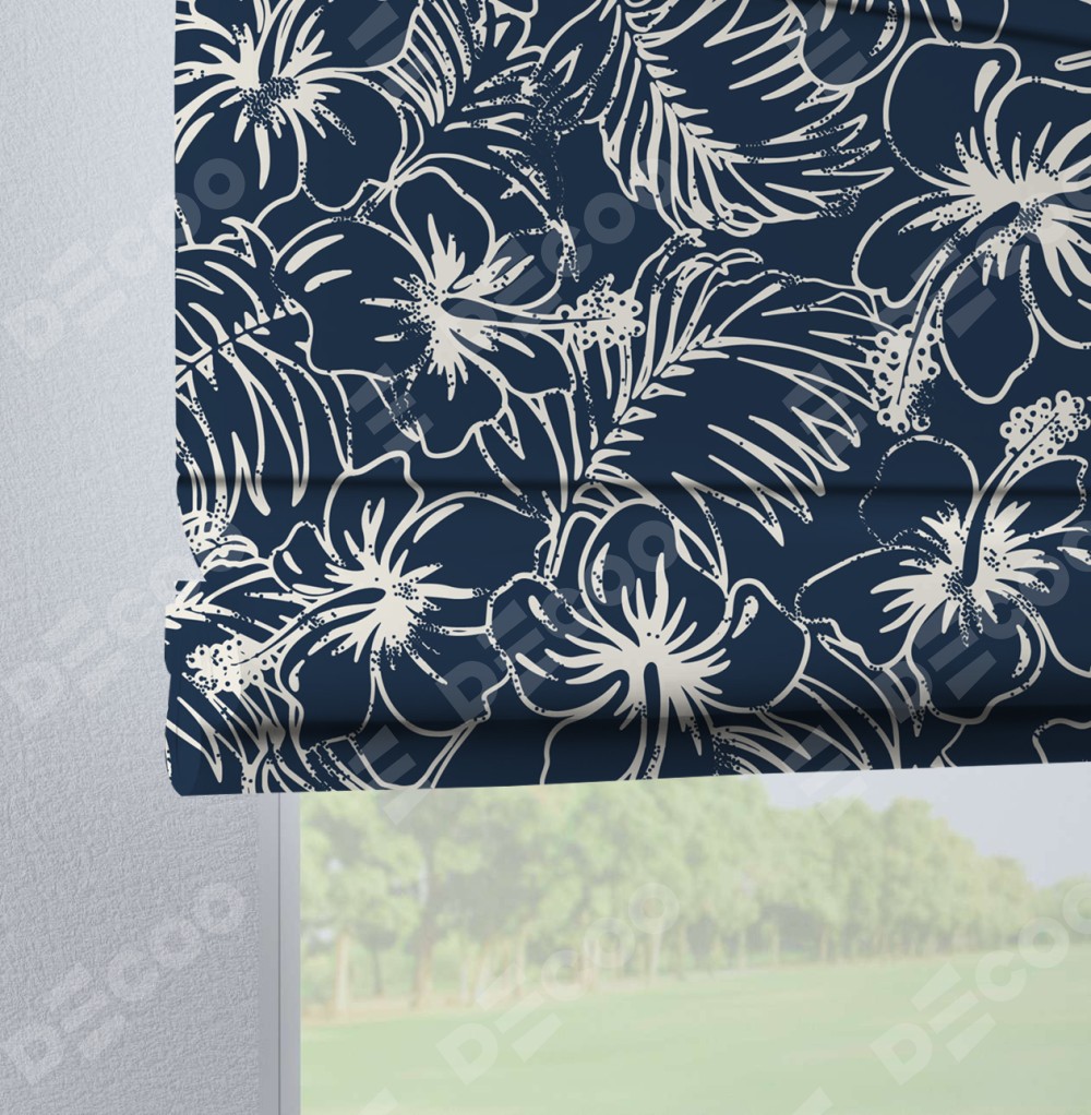 Цвет материала: В цветочек, Синий, С принтом, С рисунком, Тёмные