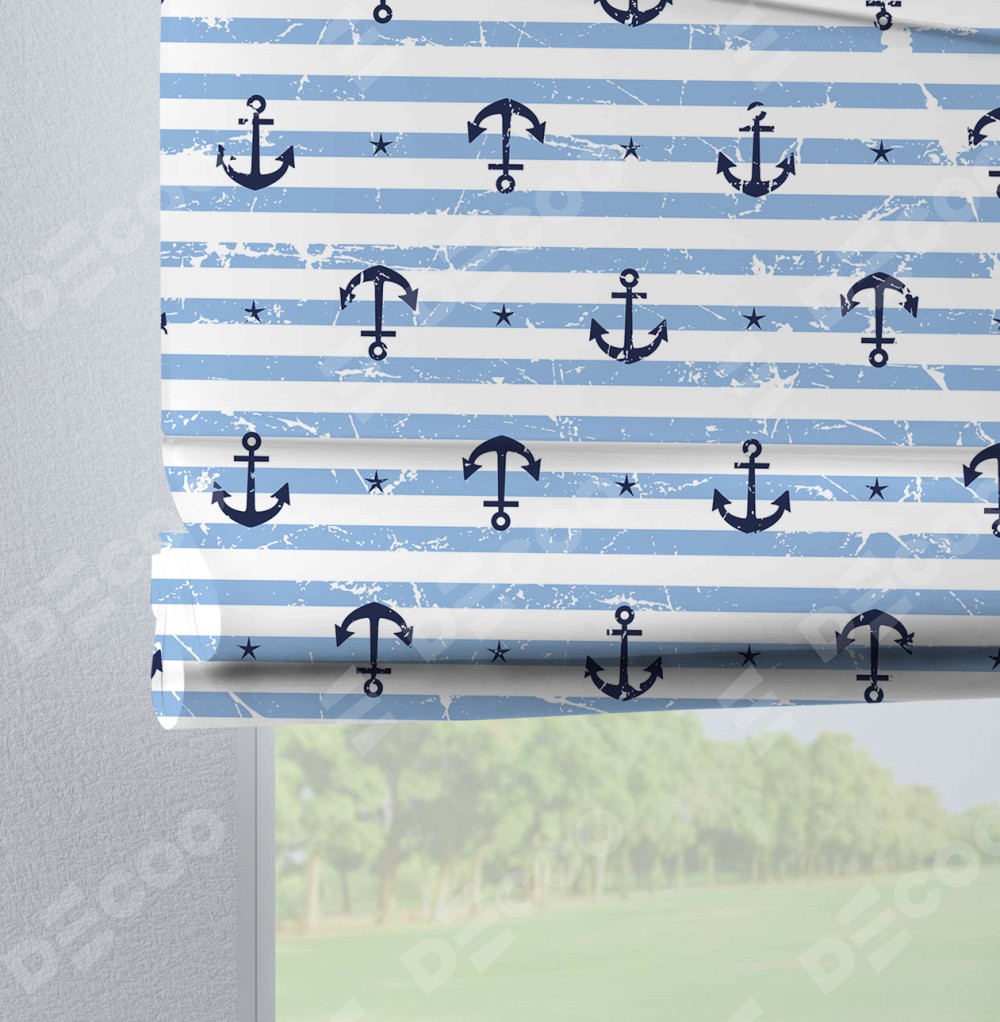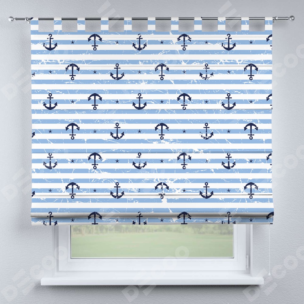 Римская штора «Кортин» на петлях «Полоски и якори»
