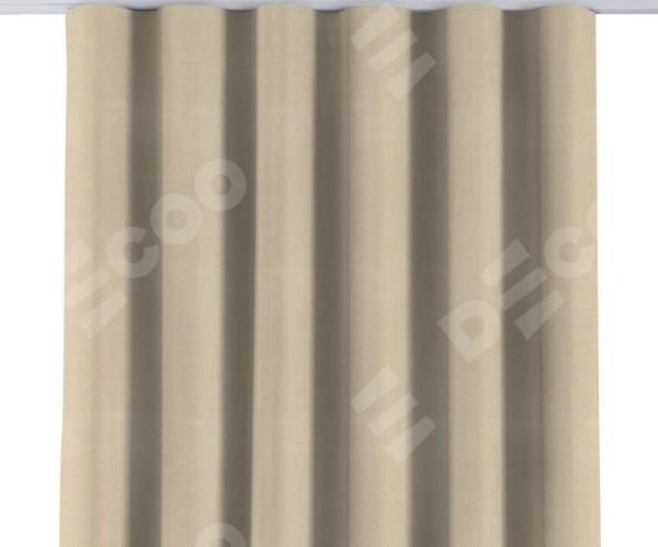 Комплект прямых штор, от производителя «Cortin», пошиты из ткани блэкаут однотонный бежевый, артикул ткани 13125. С изнаночной стороны в верхней части штор пристрачивается шторная лента с декоративными складками «Волна». Для создания элегантных складок прямые шторы шьются по стандарту с коэффициентом 1:2 (на 100 см. ширины проёма 200 см. ширины ткани).