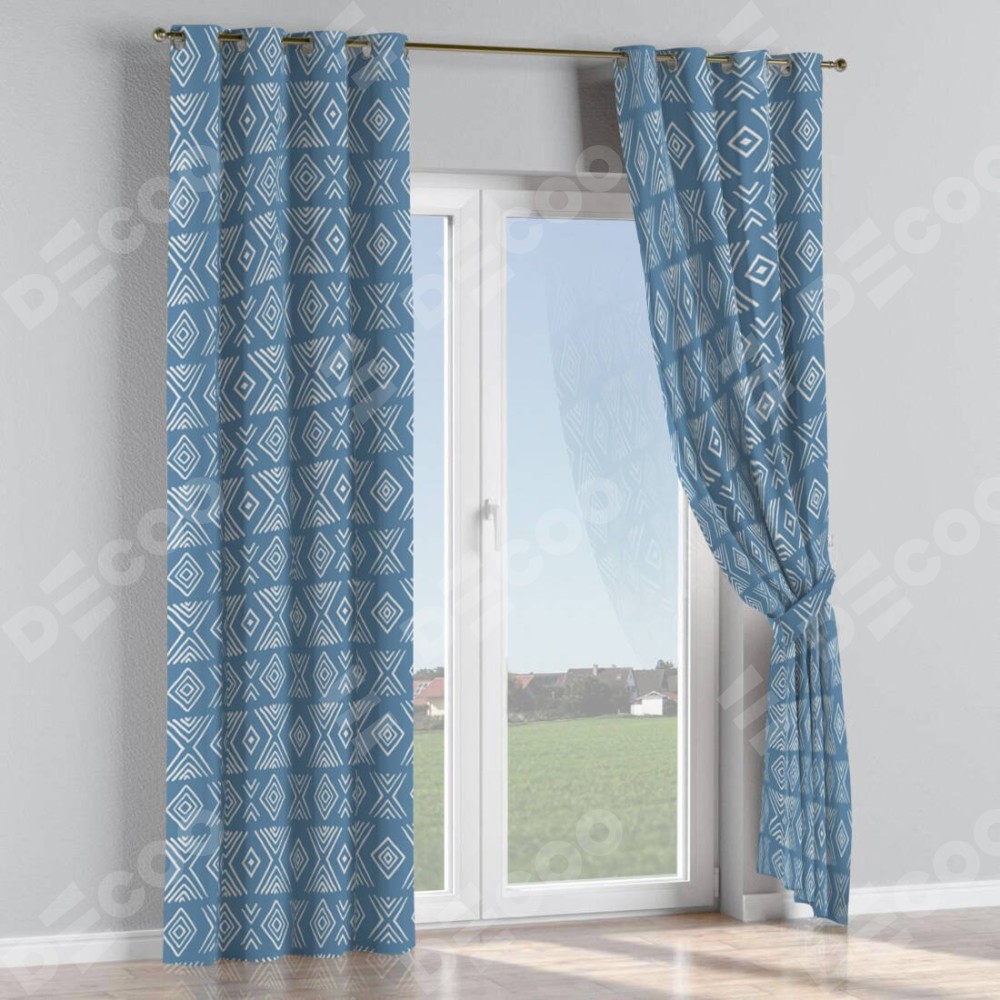 Комплект прямых штор, от производителя «Cortin», пошиты из ткани блэкаут с нанесением сублимационной печати «Графический орнамент». Данная модель пошита на люверсах, комплектуется на выбор круглым карнизом и подходит для монтажа на стену или потолок. Прямые шторы на люверсах шьются по стандарту с коэффициентом 1/2 (на 100 см. ширины проёма 200 см. ширины ткани), отличительным преимуществом данной модели является простой способ монтажа. Достаточно повесить ее на трубу и штора готова!