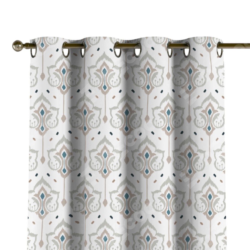 Комплект прямых штор, от производителя «Cortin», пошиты из ткани блэкаут с нанесением сублимационной печати «Икат узор». Данная модель пошита на люверсах, комплектуется на выбор круглым карнизом и подходит для монтажа на стену или потолок. Прямые шторы на люверсах шьются по стандарту с коэффициентом 1/2 (на 100 см. ширины проёма 200 см. ширины ткани), отличительным преимуществом данной модели является простой способ монтажа. Достаточно повесить ее на трубу и штора готова!
