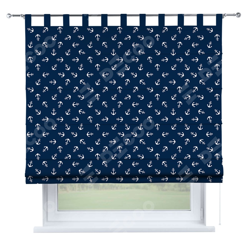 Римская штора производителя «Cortin», используется для проёма, пошита из ткани блэкаут с нанесением сублимационной печати «Морские якори». Данная модель пошита на петлях, комплектуется на выбор круглым карнизом и подходит для монтажа на стену. Римская штора на петлях имеет простую систему регулировки высоты, отличительным преимуществом данной модели является простой способ монтажа. Достаточно повесить ее на трубу и штора готова!
