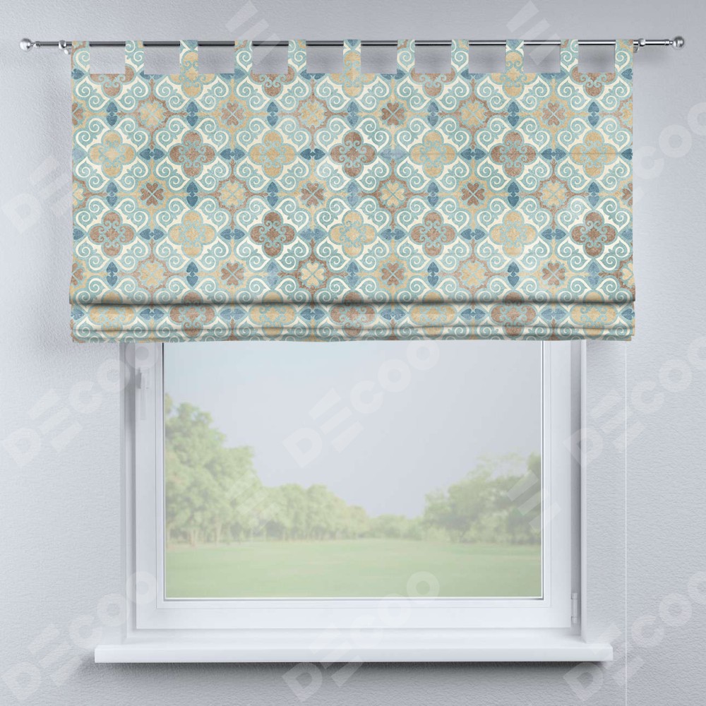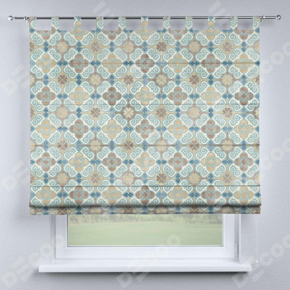 Римская штора производителя «Cortin», используется для проёма, пошита из ткани блэкаут с нанесением сублимационной печати «Фарида». Данная модель пошита на петлях, комплектуется на выбор круглым карнизом и подходит для монтажа на стену. Римская штора на петлях имеет простую систему регулировки высоты, отличительным преимуществом данной модели является простой способ монтажа. Достаточно повесить ее на трубу и штора готова!