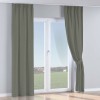 Комплект прямых штор, от производителя «Cortin», пошиты из ткани блэкаут однотонный тёмно-серый, артикул ткани 29332−1. С изнаночной стороны в верхней части штор пристрачивается шторная лента с декоративными складками «Кустик». Для создания элегантных складок прямые шторы шьются по стандарту с коэффициентом 1:2 (на 100 см. ширины проёма 200 см. ширины ткани).