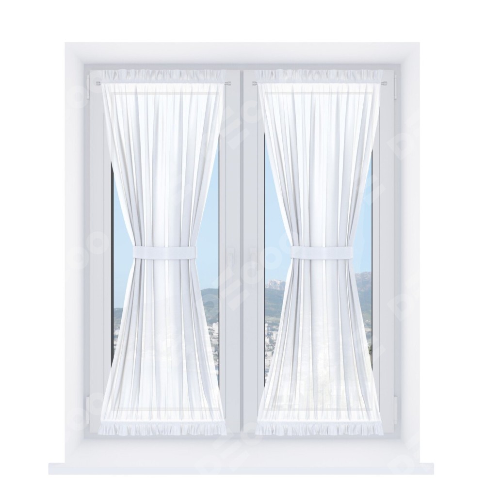 Штора «Песочные часы» производителя «Cortin», используется для створок окон и дверей, пошита из ткани однотонная белоснежная, артикул ткани 41217.