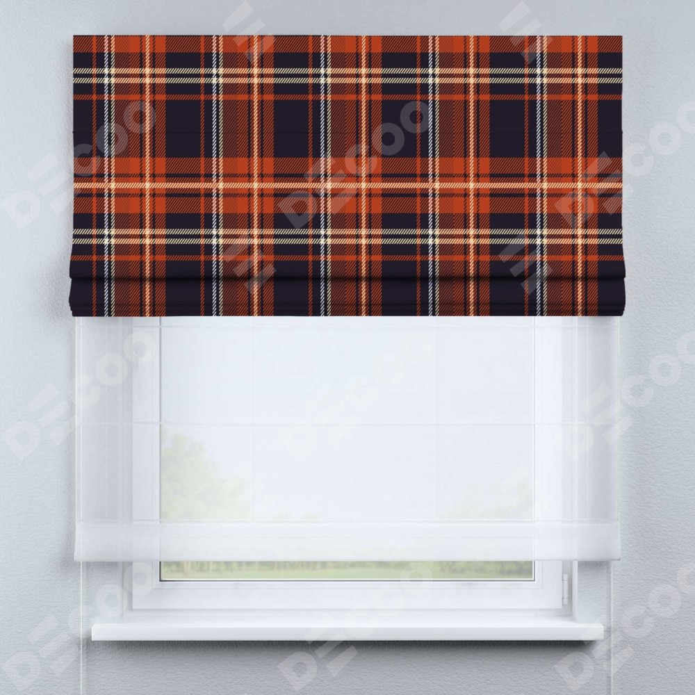 Римская штора «Кортин» день-ночь «Сине-оранжевая клетка»