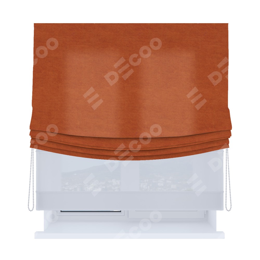 Римская штора день-ночь производителя «Cortin», используется для проёма, пошита из двух полотен, с лицевой стороны вельвет терракотовый артикул 85548, вторая ткань тюль (по стандарту комплектуется тюль белого цвета артикул V-01). Имеет универсальный механизм и подходит для монтажа: на потолок, на стену и в нишу. Удобное управление каждой шторой отдельно.