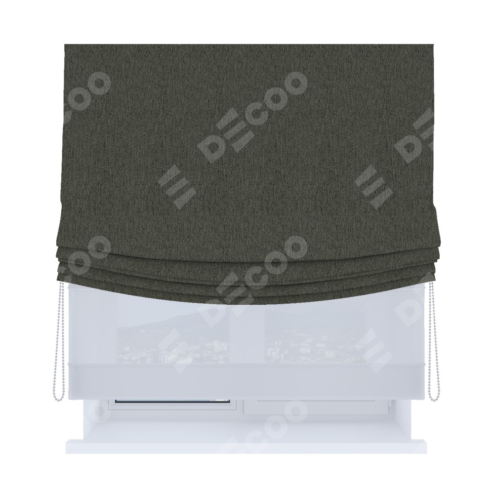 Римская штора «Кортин», день-ночь с мягкими складками, твид блэкаут тёмно-серый