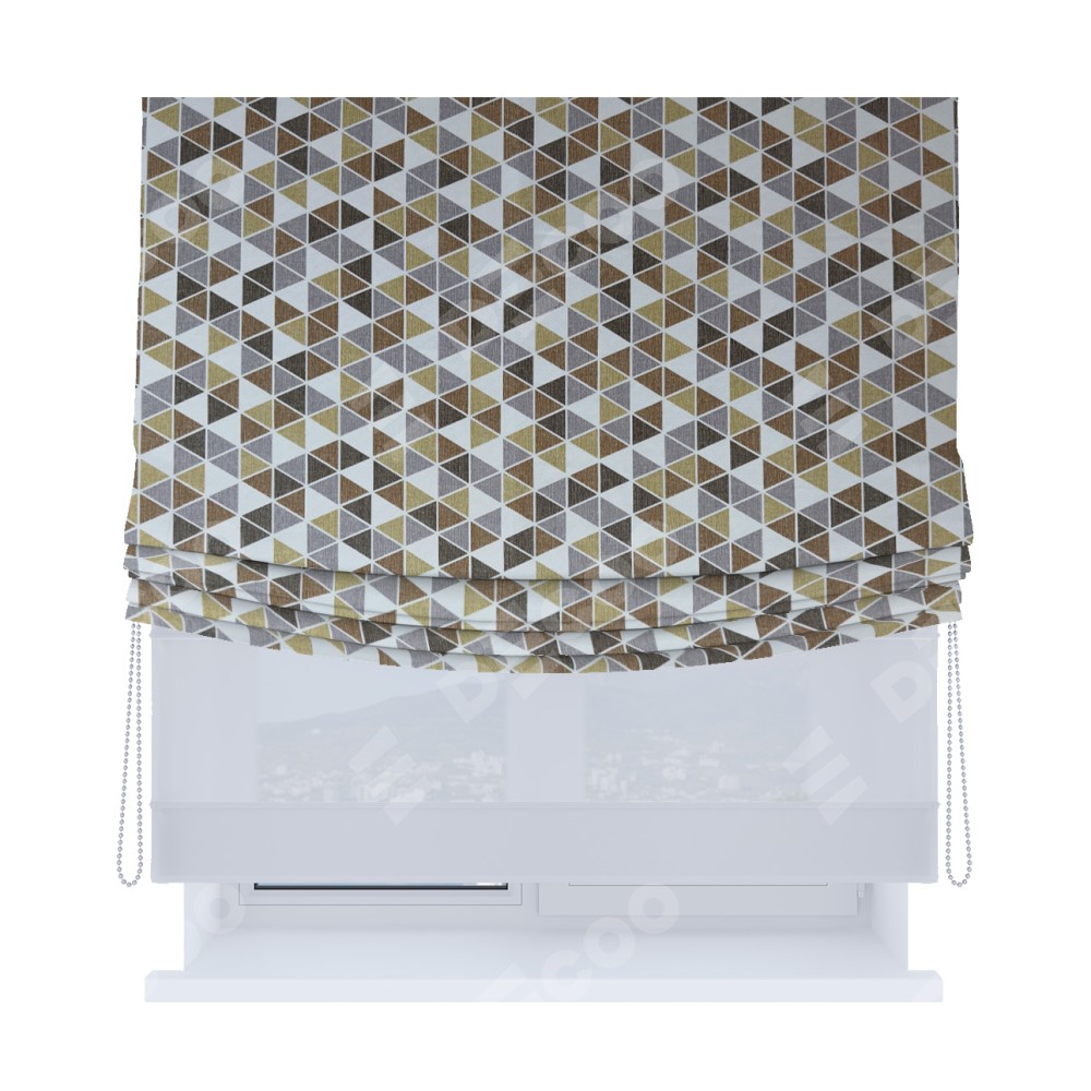 Римская штора «Кортин», день-ночь с мягкими складками, димаут «Треугольники коричневые»