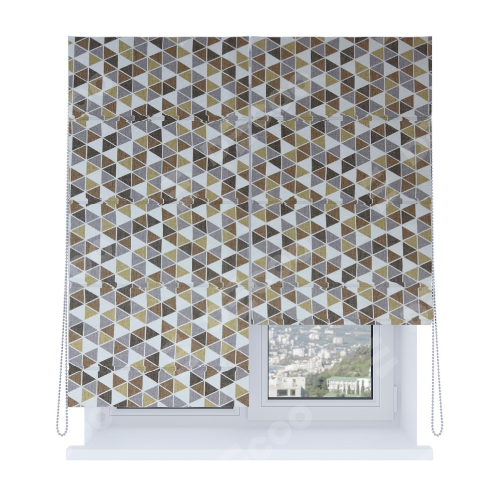 Римская штора «Кортин», система «Комфорт», димаут «Треугольники коричневые»