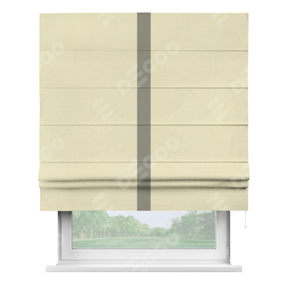 Римская штора производителя «Cortin», используется для проёма, пошита из ткани блэкаут однотонный бежевый, артикул ткани 88283. Отделка шторы кантом «Хайвей», ткань для канта используется из блэкаута однотонного разной расцветки на выбор. Имеет универсальный механизм и подходит для монтажа: на потолок, на стену и в нишу.