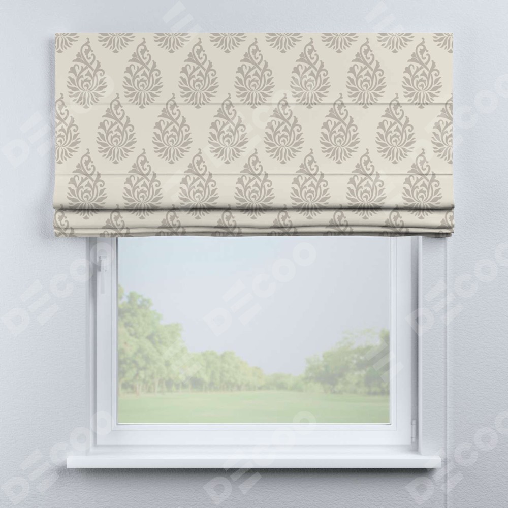 Римская штора производителя «Cortin», используется для проёма, пошита из ткани блэкаут с нанесением сублимационной печати «Изящный кулон». Имеет универсальный механизм и подходит для монтажа: на потолок, на стену и в нишу.
