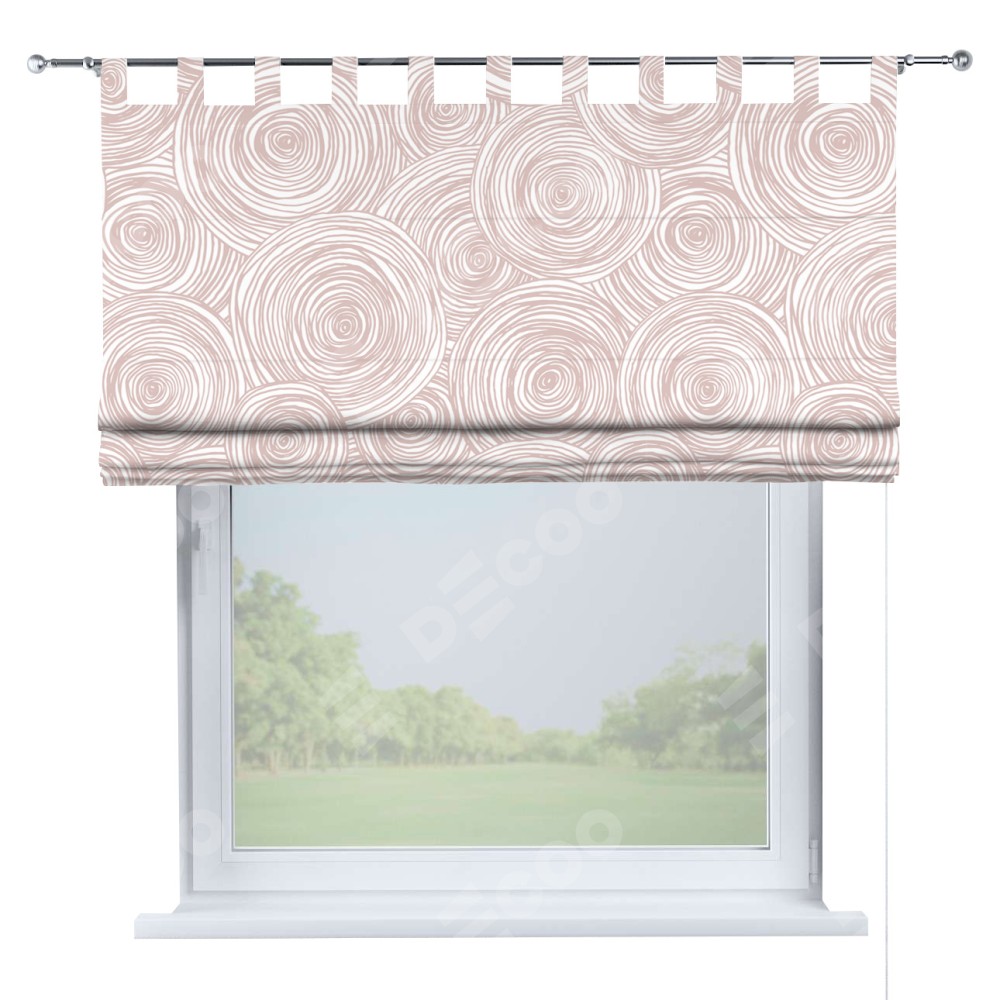 Римская штора производителя «Cortin», используется для проёма, пошита из ткани блэкаут с нанесением сублимационной печати «Бежевые круги». Данная модель пошита на петлях, комплектуется на выбор круглым карнизом и подходит для монтажа на стену. Римская штора на петлях имеет простую систему регулировки высоты, отличительным преимуществом данной модели является простой способ монтажа. Достаточно повесить ее на трубу и штора готова!