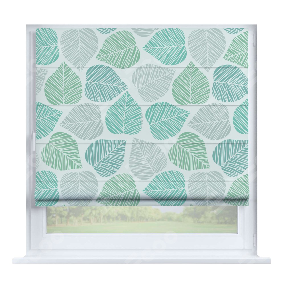 Римская штора производителя «Cortin», устанавливается на створку окна, пошита из ткани блэкаут с нанесением сублимационной печати «Весенняя листва». Штора шьётся по индивидуальным размерам, для данного типа римской шторы возможная ширина от 35 до 150 см., высота до 250 см.