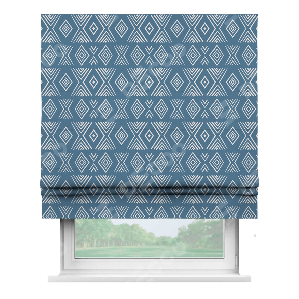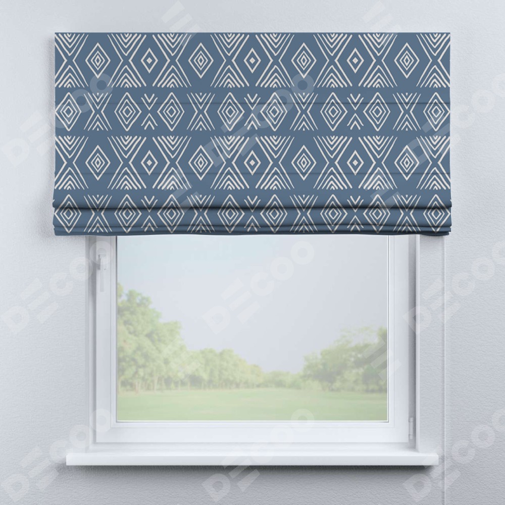 Римская штора производителя «Cortin», используется для проёма, пошита из ткани блэкаут с нанесением сублимационной печати «Графический орнамент». Имеет универсальный механизм и подходит для монтажа: на потолок, на стену и в нишу.