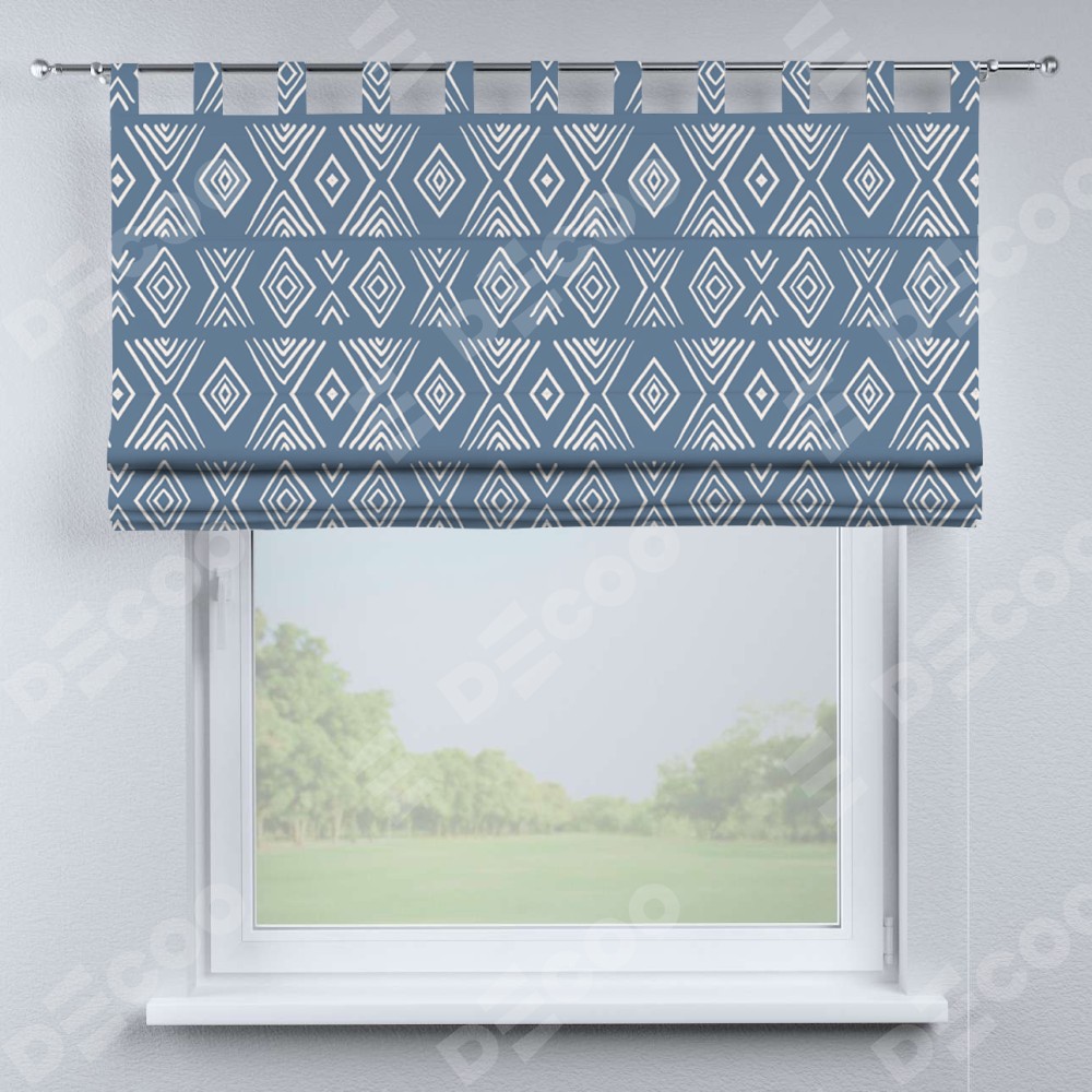 Римская штора производителя «Cortin», используется для проёма, пошита из ткани блэкаут с нанесением сублимационной печати «Графический орнамент». Данная модель пошита на петлях, комплектуется на выбор круглым карнизом и подходит для монтажа на стену. Римская штора на петлях имеет простую систему регулировки высоты, отличительным преимуществом данной модели является простой способ монтажа. Достаточно повесить ее на трубу и штора готова!