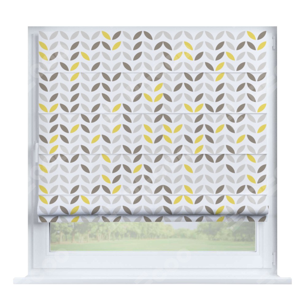 Римская штора производителя «Cortin», устанавливается на створку окна, пошита из ткани блэкаут с нанесением сублимационной печати «Маленькие листочки». Штора шьётся по индивидуальным размерам, для данного типа римской шторы возможная ширина от 35 до 150 см., высота до 250 см.