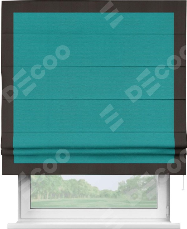 Римская штора «Кортин» с кантом Чесс, для проема, ткань блэкаут однотонный бирюзовый