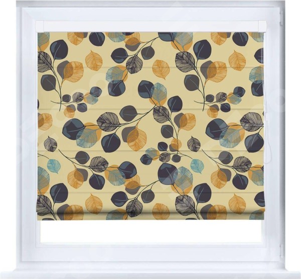 Римская штора производителя «Cortin», устанавливается на створку окна, пошита из ткани блэкаут с нанесением сублимационной печати «Листья в янтаре». Штора шьётся по индивидуальным размерам, для данного типа римской шторы возможная ширина от 35 до 150 см., высота до 250 см.