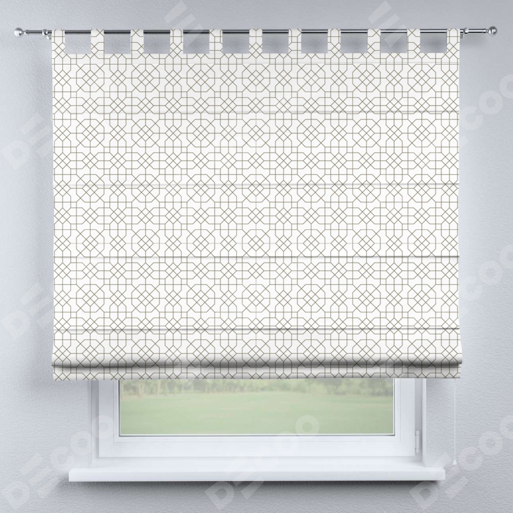 Римская штора производителя «Cortin», используется для проёма, пошита из ткани блэкаут с нанесением сублимационной печати «Орнамент из тонких линий». Данная модель пошита на петлях, комплектуется на выбор круглым карнизом и подходит для монтажа на стену. Римская штора на петлях имеет простую систему регулировки высоты, отличительным преимуществом данной модели является простой способ монтажа. Достаточно повесить ее на трубу и штора готова!
