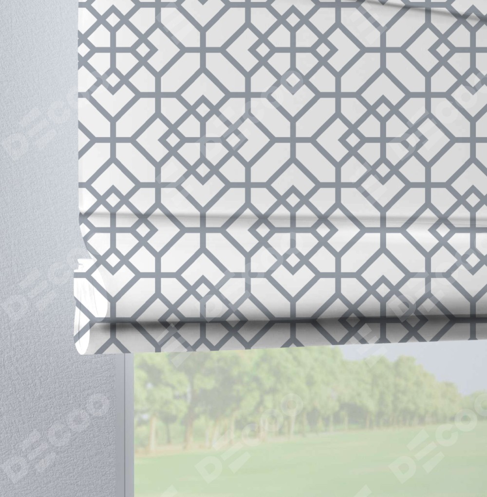Римская штора производителя «Cortin», используется для проёма, пошита из ткани блэкаут с нанесением сублимационной печати «Архитектурный орнамент». Данная модель пошита на петлях, комплектуется на выбор круглым карнизом и подходит для монтажа на стену. Римская штора на петлях имеет простую систему регулировки высоты, отличительным преимуществом данной модели является простой способ монтажа. Достаточно повесить ее на трубу и штора готова!
