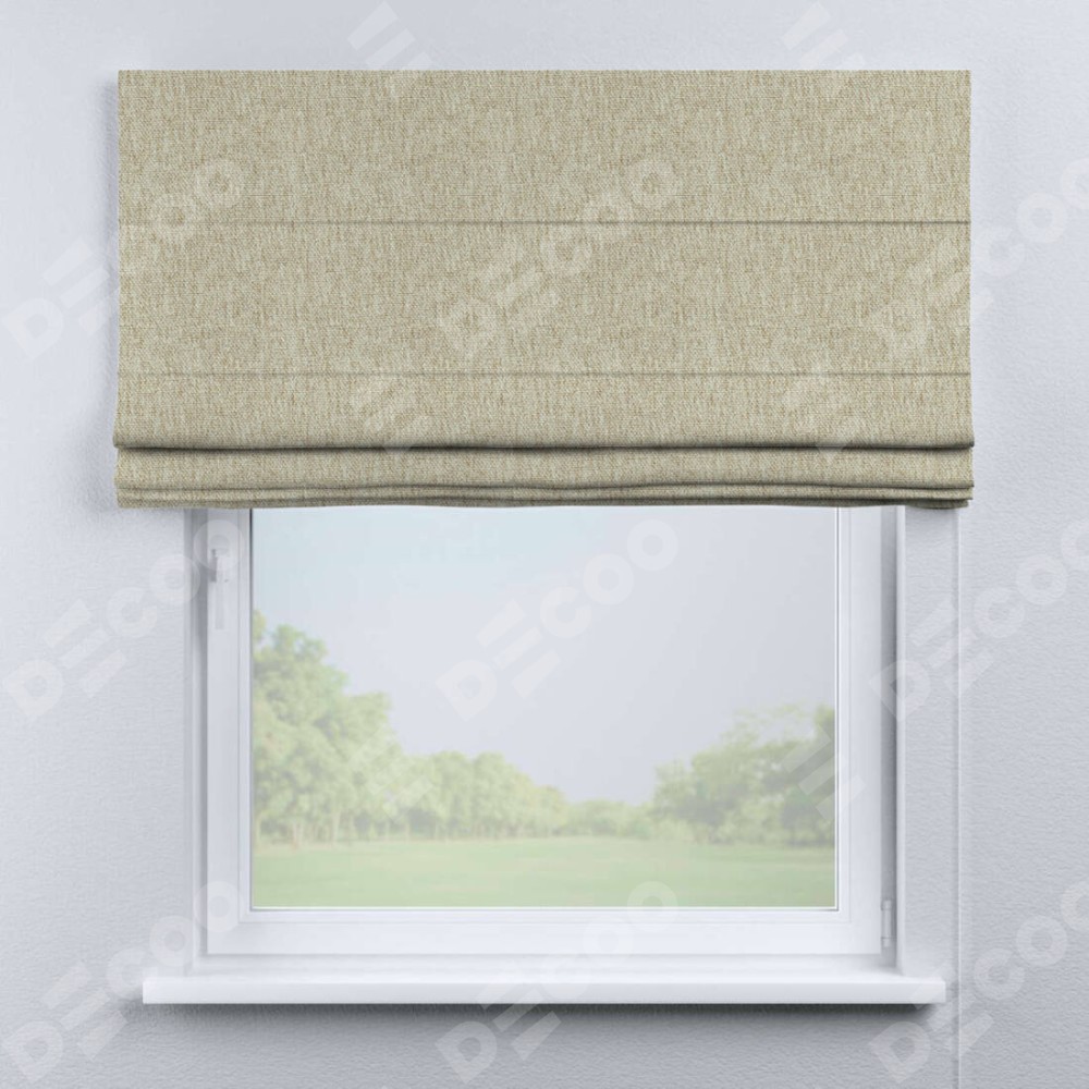 Римская штора производителя «Cortin», используется для проёма, пошита из ткани стиф димаут светло-бежевый, артикул ткани 18084. Имеет универсальный механизм и подходит для монтажа: на потолок, на стену и в нишу.