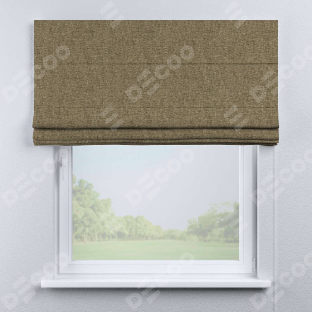 Римская штора производителя «Cortin», используется для проёма, пошита из ткани стиф димаут тёмно-бежевый, артикул ткани 18085. Имеет универсальный механизм и подходит для монтажа: на потолок, на стену и в нишу.