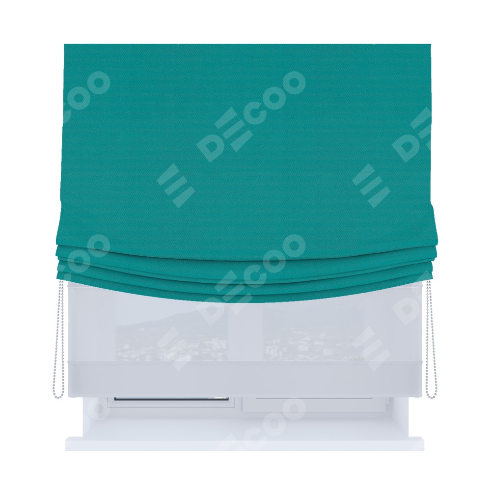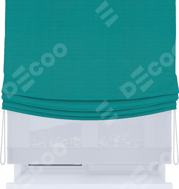 Римская штора «Кортин», день-ночь с мягкими складками, блэкаут однотонный бирюзовый