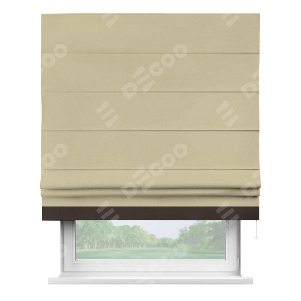 Римская штора производителя «Cortin», используется для проёма, пошита из ткани блэкаут однотонный кофейный, артикул ткани 13130. Отделка шторы кантом «Джестер», ткань для канта используется из блэкаута однотонного разной расцветки на выбор. Имеет универсальный механизм и подходит для монтажа: на потолок, на стену и в нишу.