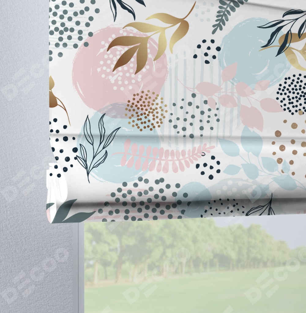 Римская штора на петлях «Точки и листочки»