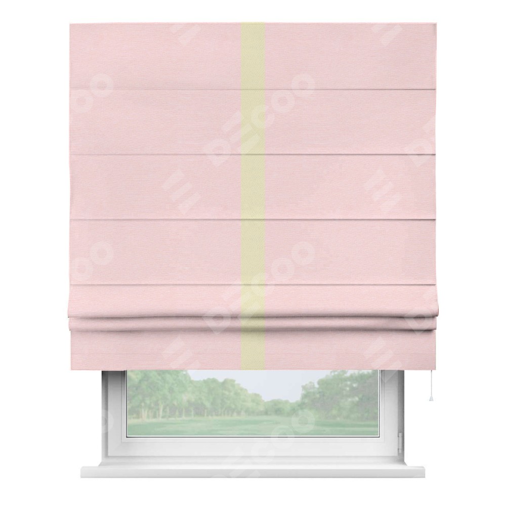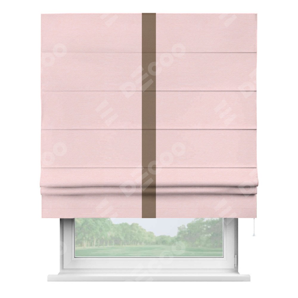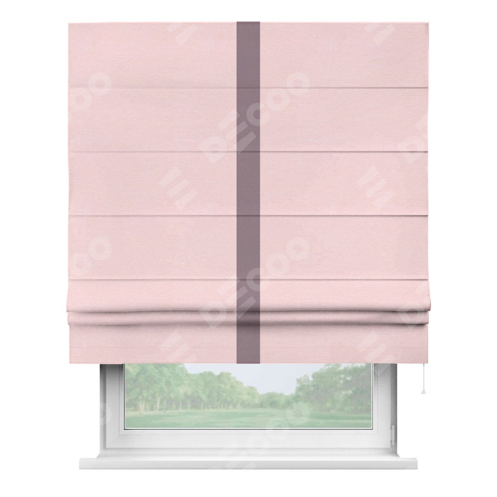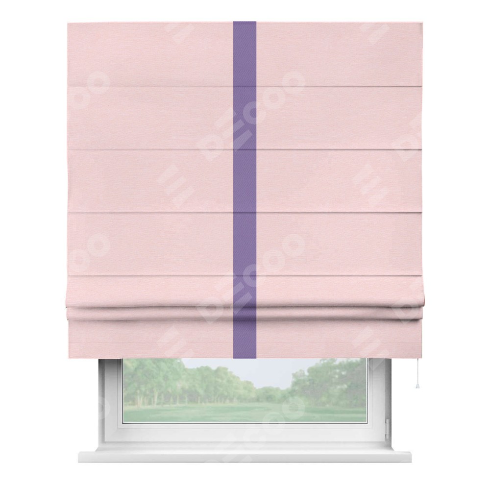 Римская штора производителя «Cortin», используется для проёма, пошита из ткани блэкаут однотонный розовый, артикул ткани 83046. Отделка шторы кантом «Хайвей», ткань для канта используется из блэкаута однотонного разной расцветки на выбор. Имеет универсальный механизм и подходит для монтажа: на потолок, на стену и в нишу.