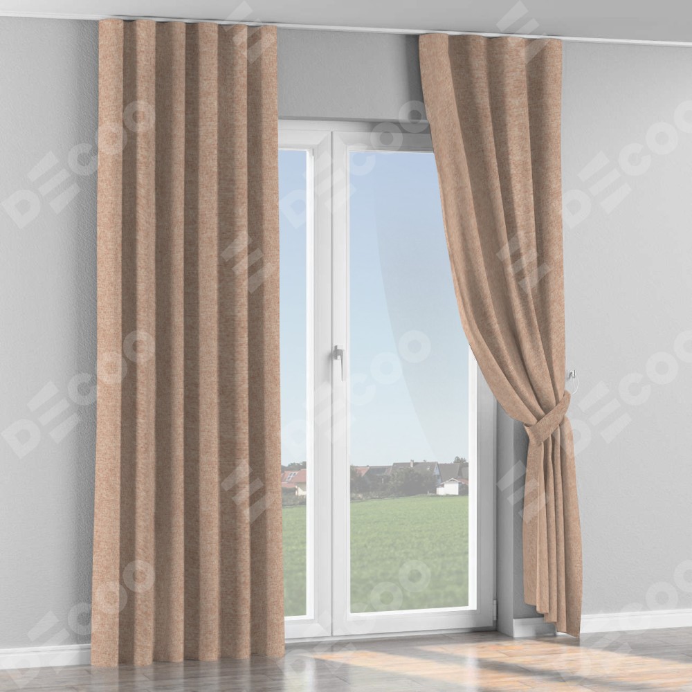 Комплект прямых штор, от производителя «Cortin», пошиты из ткани лён кашемир розовая пудра, артикул ткани 21619. С изнаночной стороны в верхней части штор пристрачивается шторная лента с декоративными складками «Волна». Для создания элегантных складок прямые шторы шьются по стандарту с коэффициентом 1:2 (на 100 см. ширины проёма 200 см. ширины ткани).