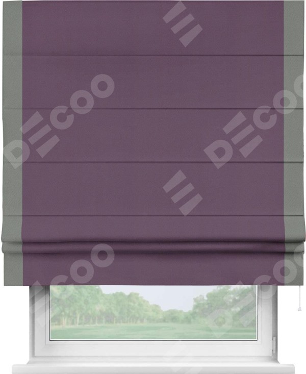 Римская штора производителя «Cortin», используется для проёма, пошита из ткани блэкаут однотонный фуксия, артикул ткани 88303. Отделка шторы кантом «Стрим Дуо», ткань для канта используется из блэкаута однотонного разной расцветки на выбор. Имеет универсальный механизм и подходит для монтажа: на потолок, на стену и в нишу.