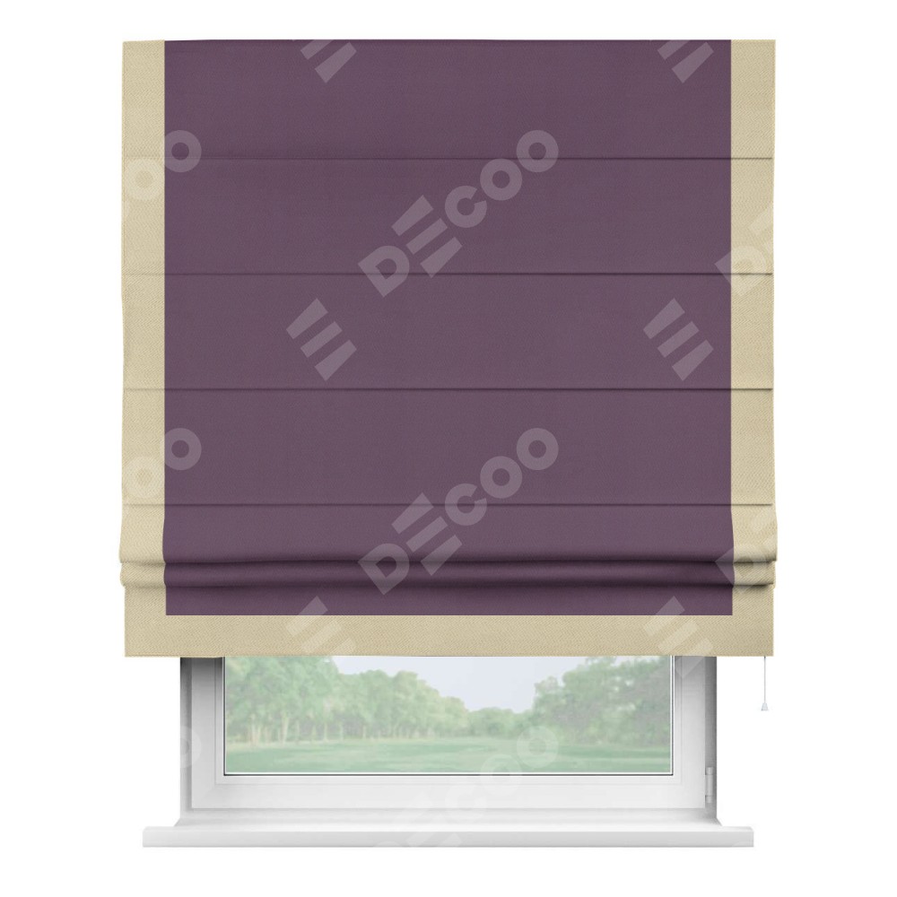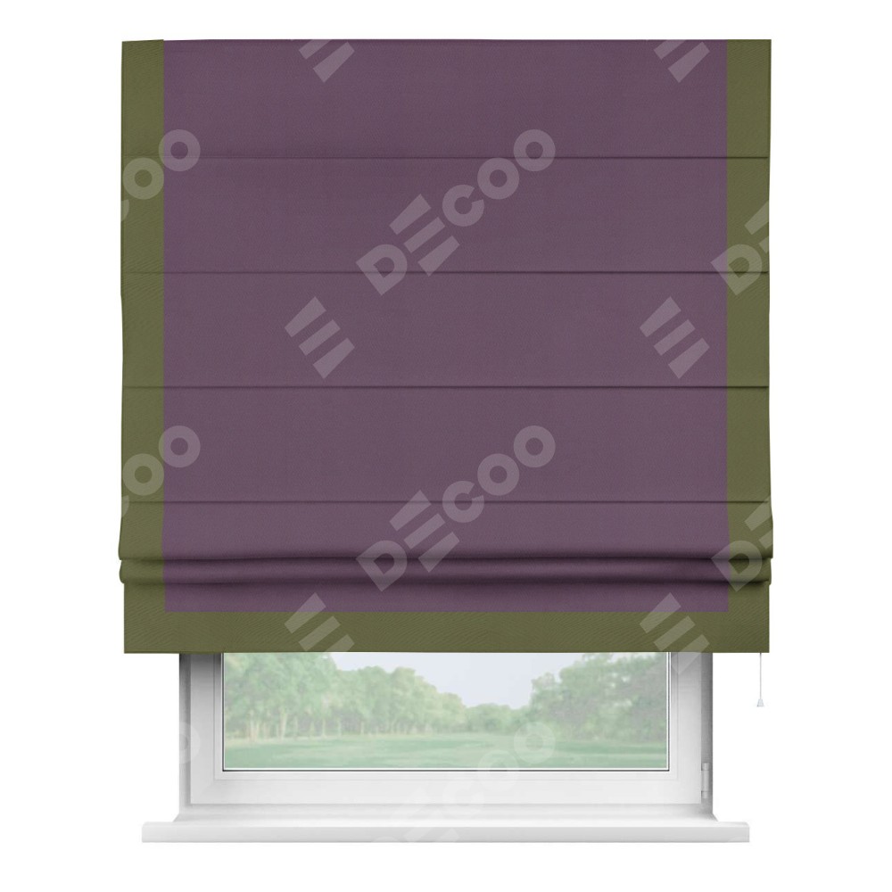 Римская штора производителя «Cortin», используется для проёма, пошита из ткани блэкаут однотонный фуксия, артикул ткани 88303. Отделка шторы кантом «Виктория», ткань для канта используется из блэкаута однотонного разной расцветки на выбор. Имеет универсальный механизм и подходит для монтажа: на потолок, на стену и в нишу.