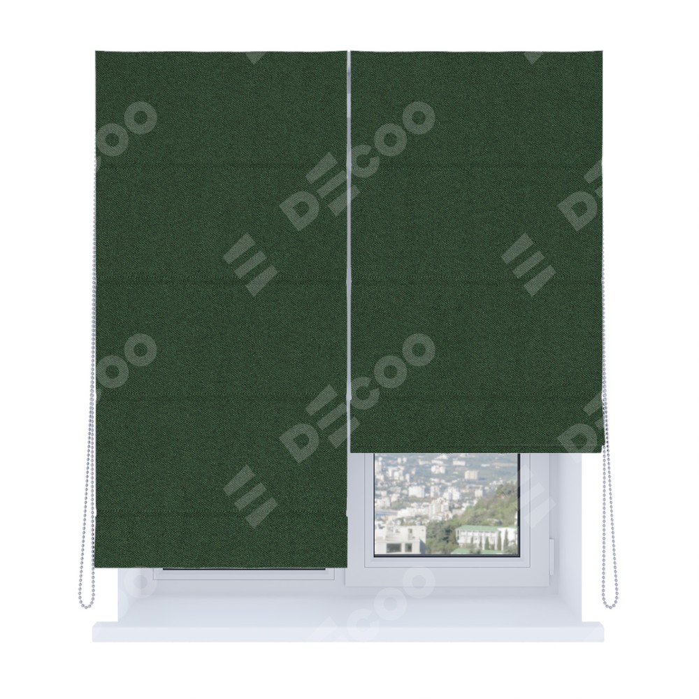 Римская штора «Кортин», система «Комфорт», лён блэкаут зелёный