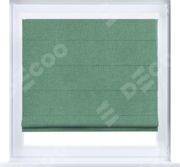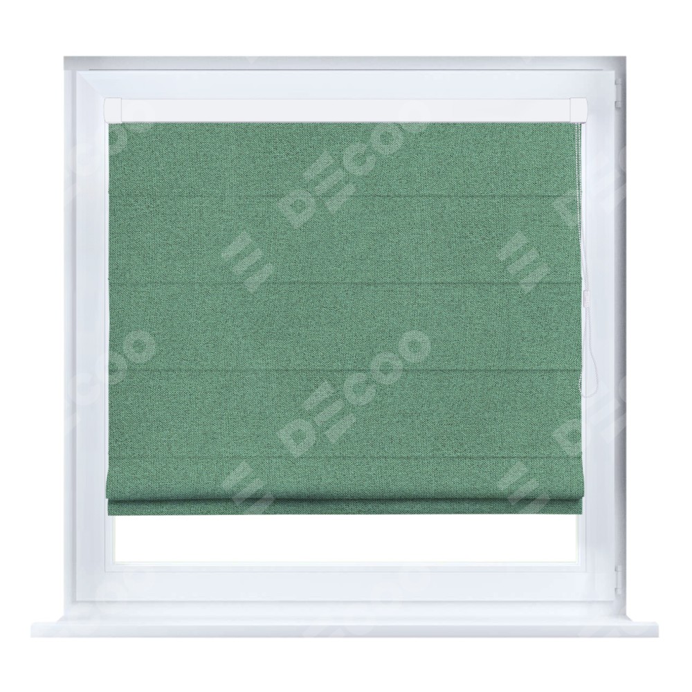 Римская штора производителя «Cortin», устанавливается на створку окна, пошита из ткани лён блэкаут светло-бирюзовый, артикул 69443. Штора шьётся по индивидуальным размерам, для данного типа римской шторы возможная ширина от 35 до 150 см., высота до 250 см.