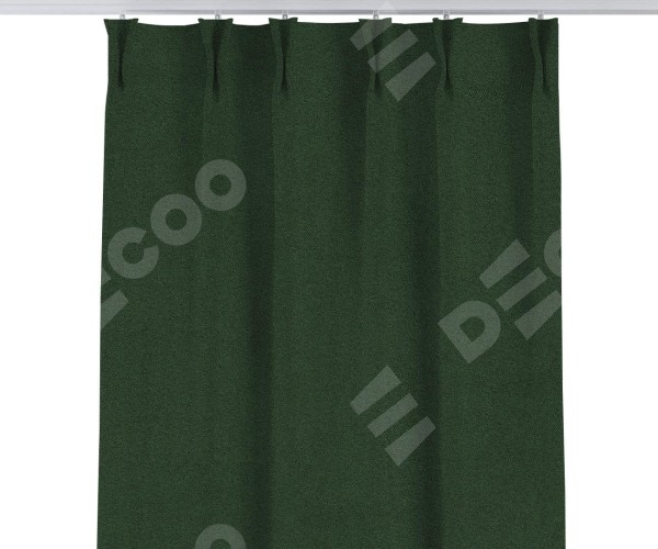 Комплект прямых штор, от производителя «Cortin», пошиты из ткани лён блэкаут зелёный, артикул ткани 69497. С изнаночной стороны в верхней части штор пристрачивается шторная лента с декоративными складками «Кустик». Для создания элегантных складок прямые шторы шьются по стандарту с коэффициентом 1:2 (на 100 см. ширины проёма 200 см. ширины ткани).